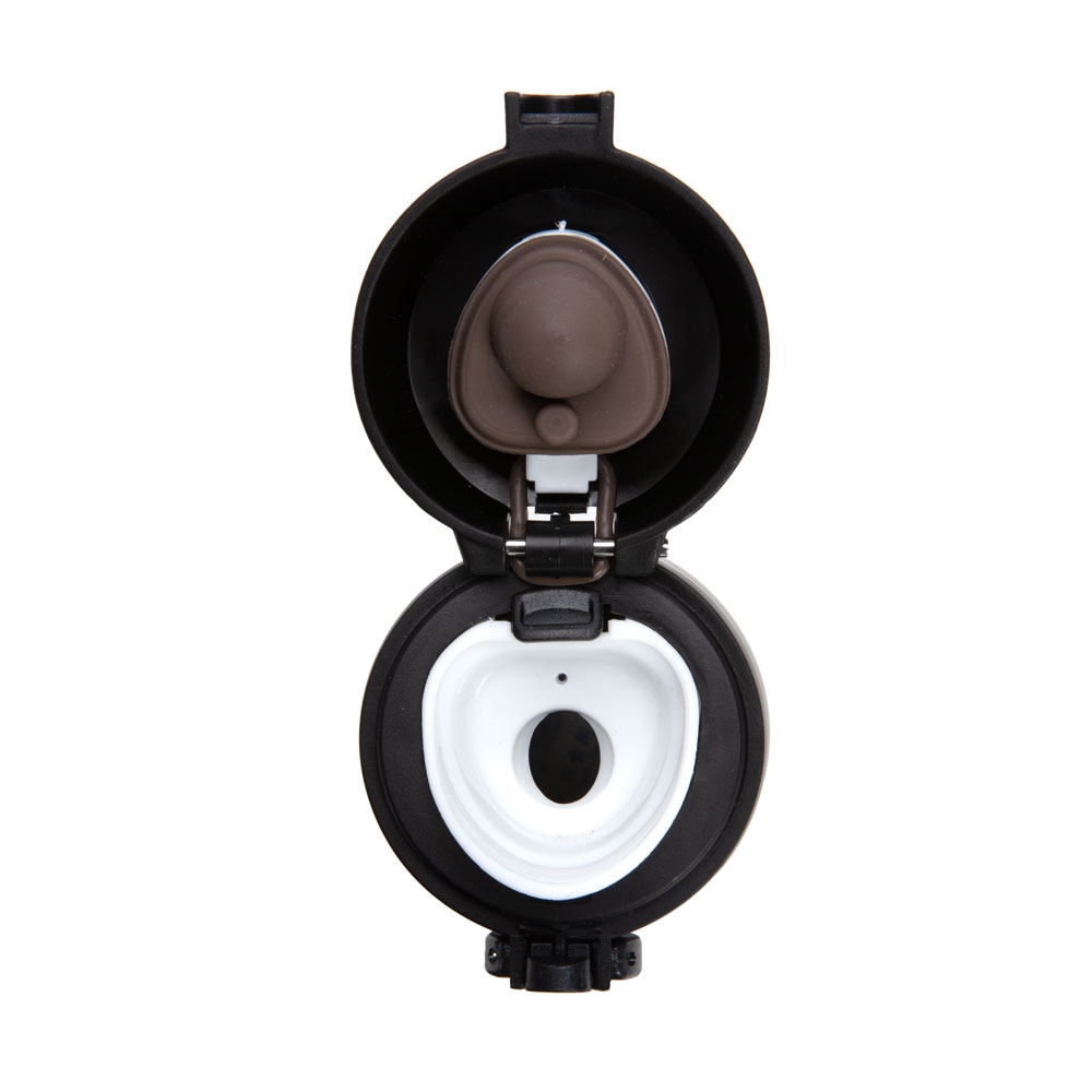 Garrafa térmica de 400ml de metal colorida com botão e válvula para abertura. Possui um sistema de trava (basta mover para cima/baixo para abrir/fechar), pressione o botão central para abrir a tampa(possui na parte interna borracha protetora evitando vazar o líquido). Para abrir a tampa por completo basta rosqueá-la, parte interna revestida em inox. Na embalagem do produto pode ir especificado a capacidade de 450ml ou 500ml devido aos fabricantes que trabalham terem impresso a descrição deste modo, porém ressalvamos a capacidade correta de 400ml.